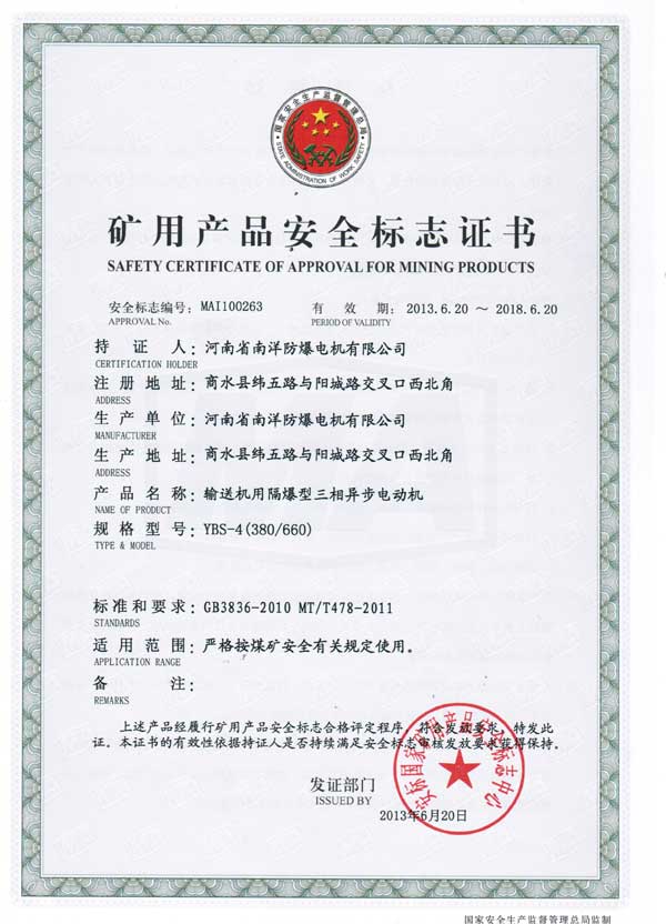 輸送機(jī)防爆電機(jī)主要用于煤礦井下的皮帶輸送機(jī),刮板輸送機(jī)等配套電機(jī),機(jī)座由鋼板焊接成形,風(fēng)罩,接線盒,絕緣結(jié)構(gòu)采取加強(qiáng)措施,防止碎石墜落砸傷電機(jī),已適應(yīng)煤礦井下的復(fù)雜環(huán)境。防爆性能符合GB3836.1《爆炸性環(huán)境用防爆電氣設(shè)備 通用要求》和GB3836.2《爆炸性環(huán)境用防爆電氣設(shè)備隔爆性電氣設(shè)備d》的規(guī)定,適用于煤礦井下具有可燃性氣體或煤塵與空氣形成爆炸性氣體環(huán)境的場(chǎng)所,防爆標(biāo)志為ExdI Mb。